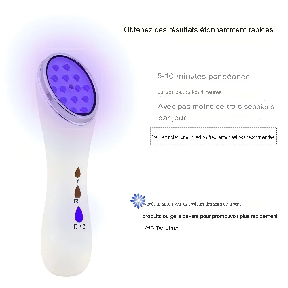 Conçu pour les personnes souhaitant un soin personnalisé, l’appareil de soin du visage à lumière LED pour une utilisation à domicile offre une solution rapide et efficace. Avec ses trois modes de lumière, il agit non seulement pour réduire les imperfections, mais aussi pour améliorer la texture globale de votre peau.