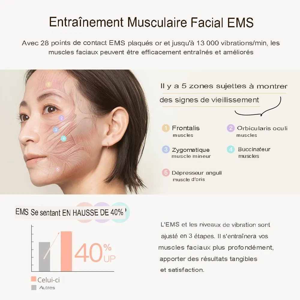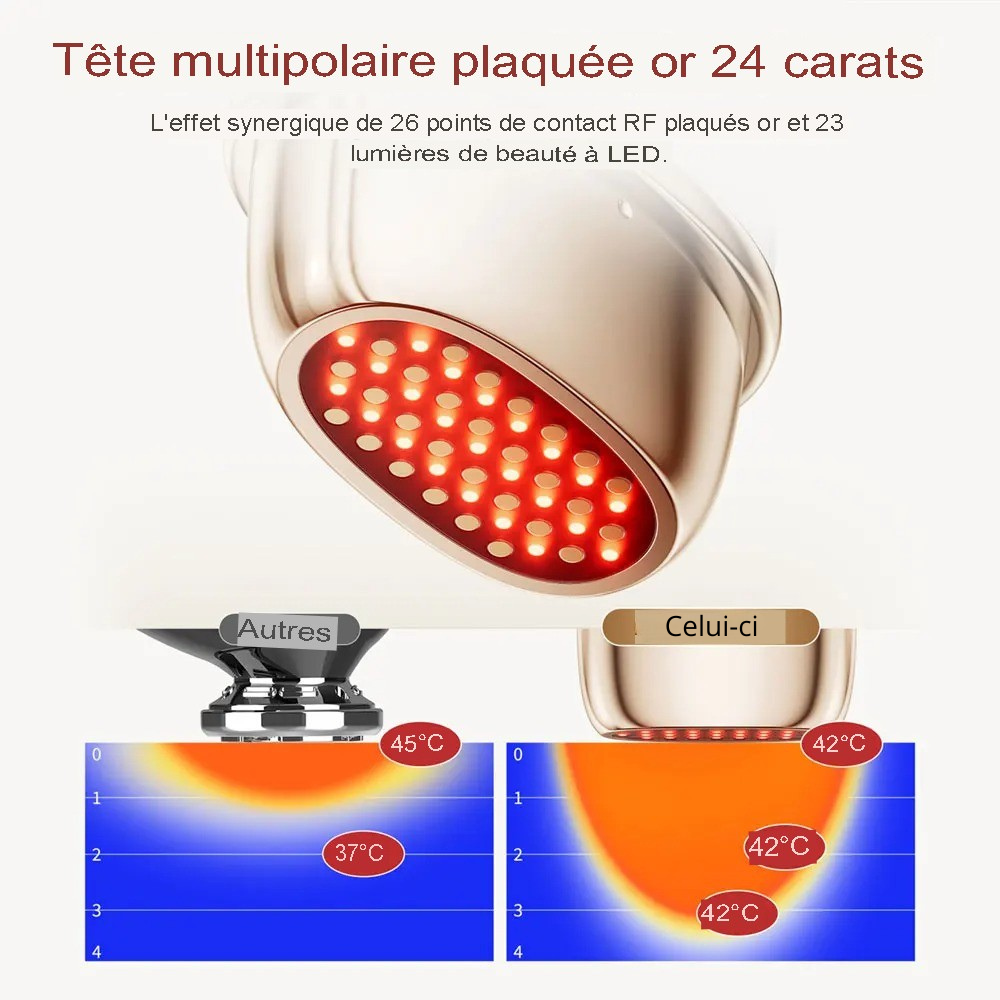 Appareil de beauté RF Lifting du visage par EMS Anti-âge et anti-rides Soin de la peau par lumière 3 couleurs Mini appareil de massage raffermissant par radiofréquence