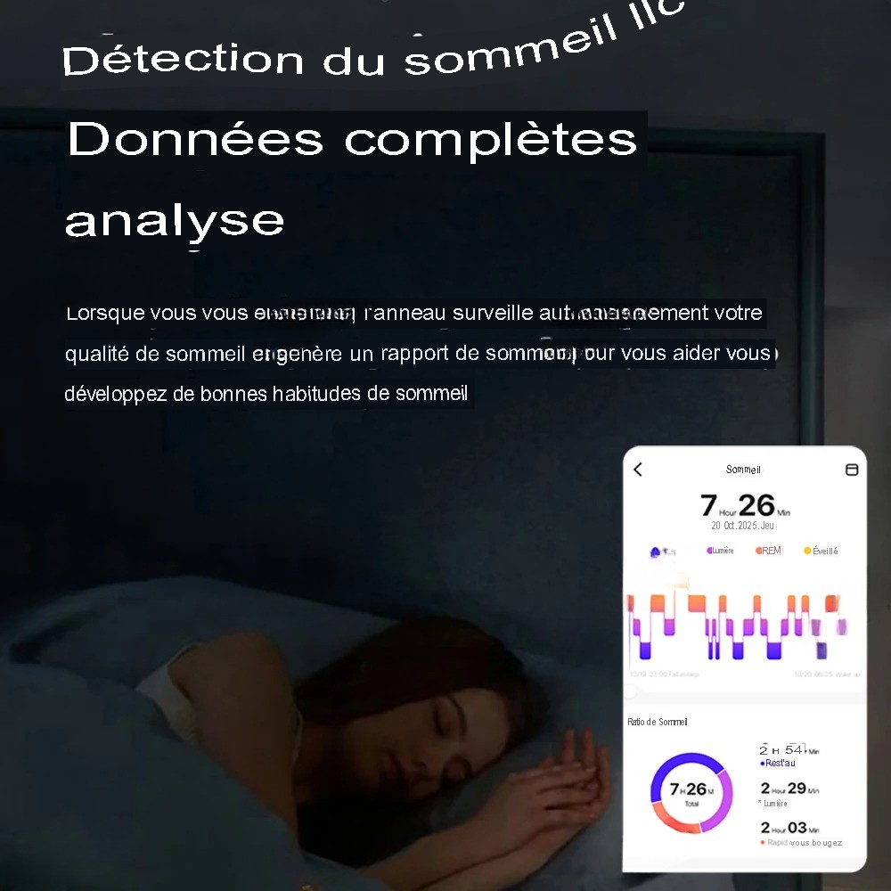 Bague connectée NFC 2025 avec contrôle photo, suivi de santé, appels Bluetooth, fréquence cardiaque, étanche 5 ATM, cadeau idéal pour hommes et femmes.: Suivi de santé avancé