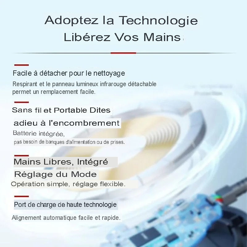 En utilisant la Casquette thérapie par la lumière rouge pour la croissance des cheveux, vous bénéficiez d’une thérapie sécurisée et sans effets secondaires. Ce dispositif s’adapte facilement à votre routine quotidienne, offrant une utilisation simple grâce à son port de charge USB de type Type-C.