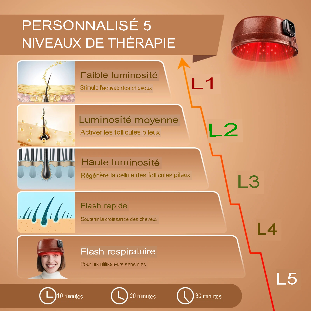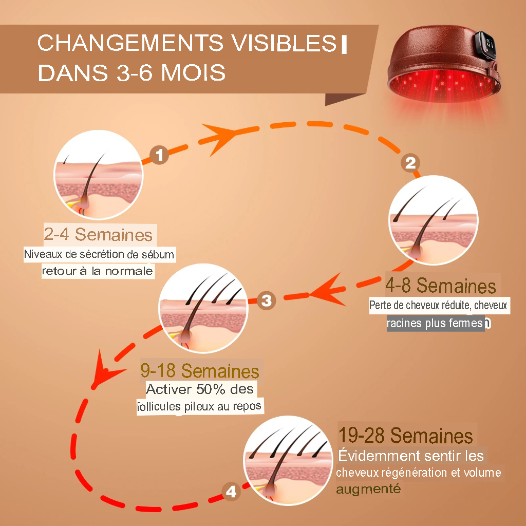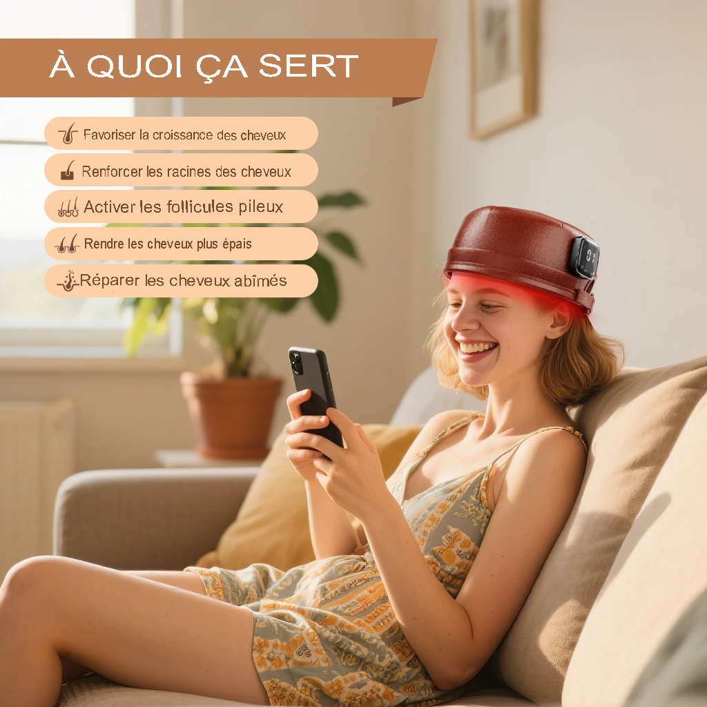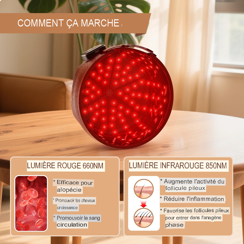 Découvrez les bienfaits de la lumière rouge avec le 120 Diodes Bonnet de croissance capillaire 660 nm et 850 nm, luminothérapie rouge, anti-chute, 3000 mAh