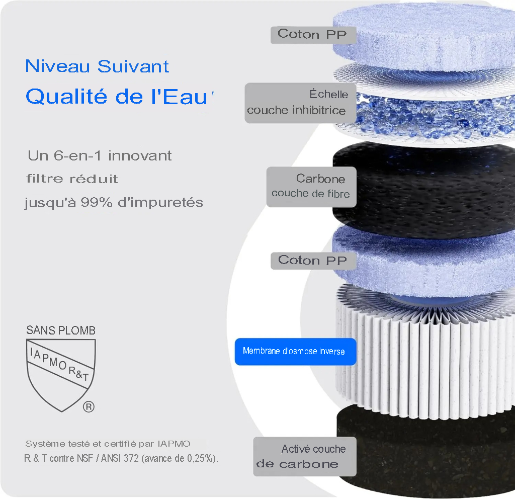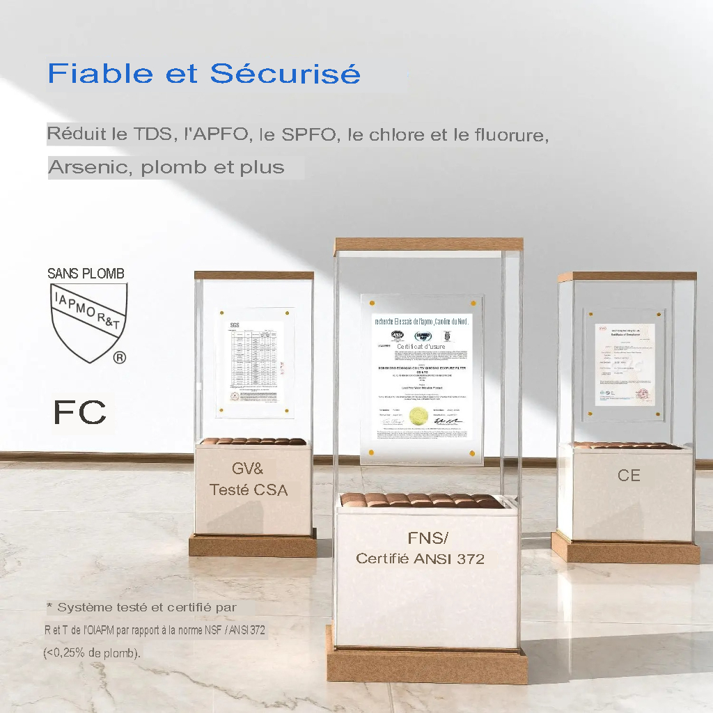 - Système d’osmose inverse certifié NSF/ANSI 58 et 372