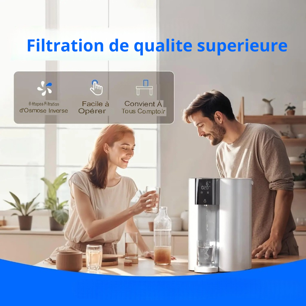 La filtration de l’eau par osmose inversée vous offre la solution idéale pour déguster une eau de qualité supérieure directement chez vous. Grâce à sa technologie avancée, elle élimine les contaminants indésirables présents dans l’eau de votre robinet, transformant ainsi celle-ci en une eau pure et saine. Ce système s’intègre facilement à votre quotidien, vous garantissant une hydratation optimale jour après jour.