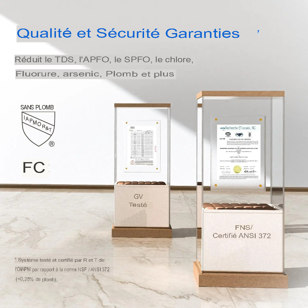 Grâce à sa technologie multi-étapes, ce système de filtration par osmose inverse garantit la suppression de 99 % des impuretés telles que les minéraux indésirables, bactéries, et certains pesticides. Profitez d’une eau au goût frais et léger, tout en protégeant votre organisme de substances potentiellement nocives.