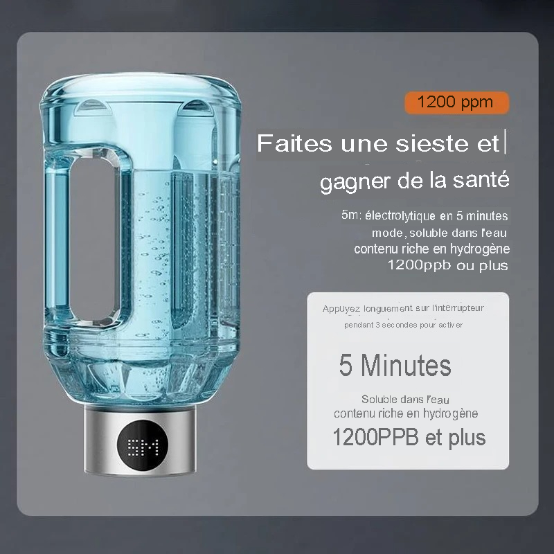 Sa technologie innovante vous garantit une eau enrichie en hydrogène, favorisant votre bien-être, peu importe où vous vous trouvez. En plus de sa robustesse, cette bouteille d’eau offre une expérience de boisson supérieure grâce à une électrolyse efficace, indispensable pour ceux qui souhaitent bénéficier d’une hydratation optimisée.