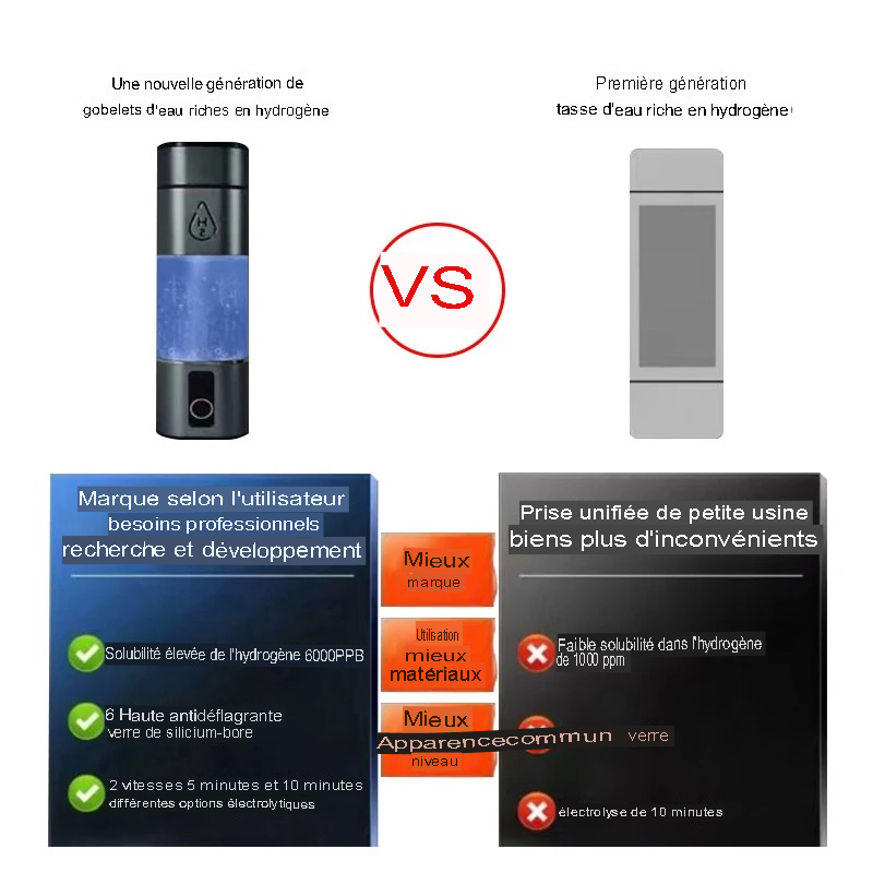 Le générateur d’eau riche en hydrogène en bouteille, utilisant la technologie avancée SPE et PEM, révolutionne la façon dont vous consommez l’eau. Designed with precision, il produit une eau enrichie en hydrogène qui offre de nombreux avantages pour la santé, rendue facilement accessible grâce à son mécanisme innovant.