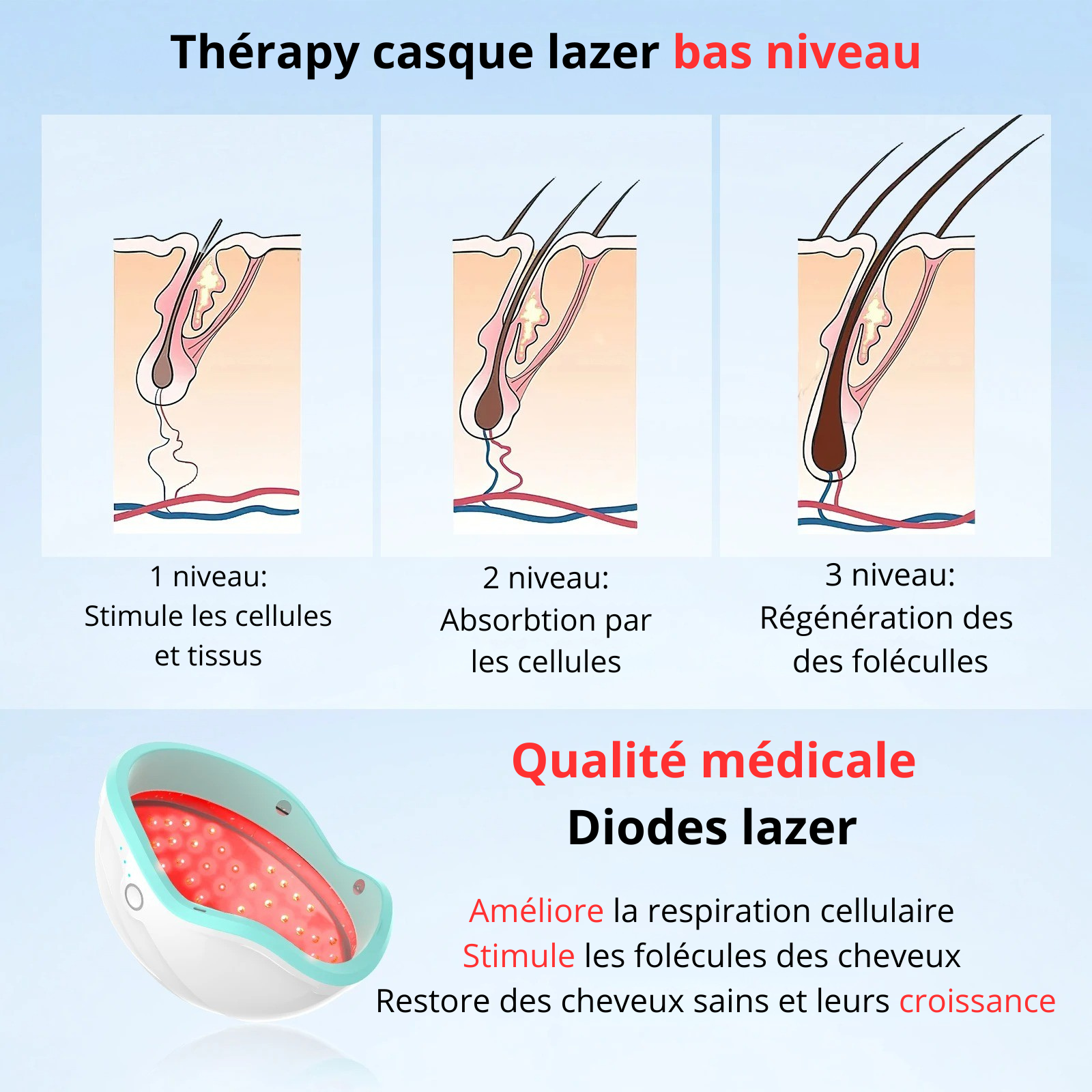 Casque de Croissance Capillaire LLLT sans Fil pour Cheveux Fins