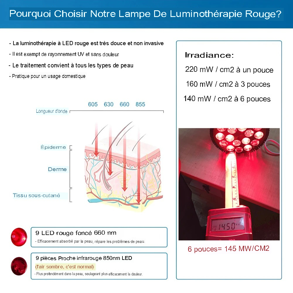 Découvrez la polyvalence de la Lampe de luminothérapie rouge 18 LED 54 W