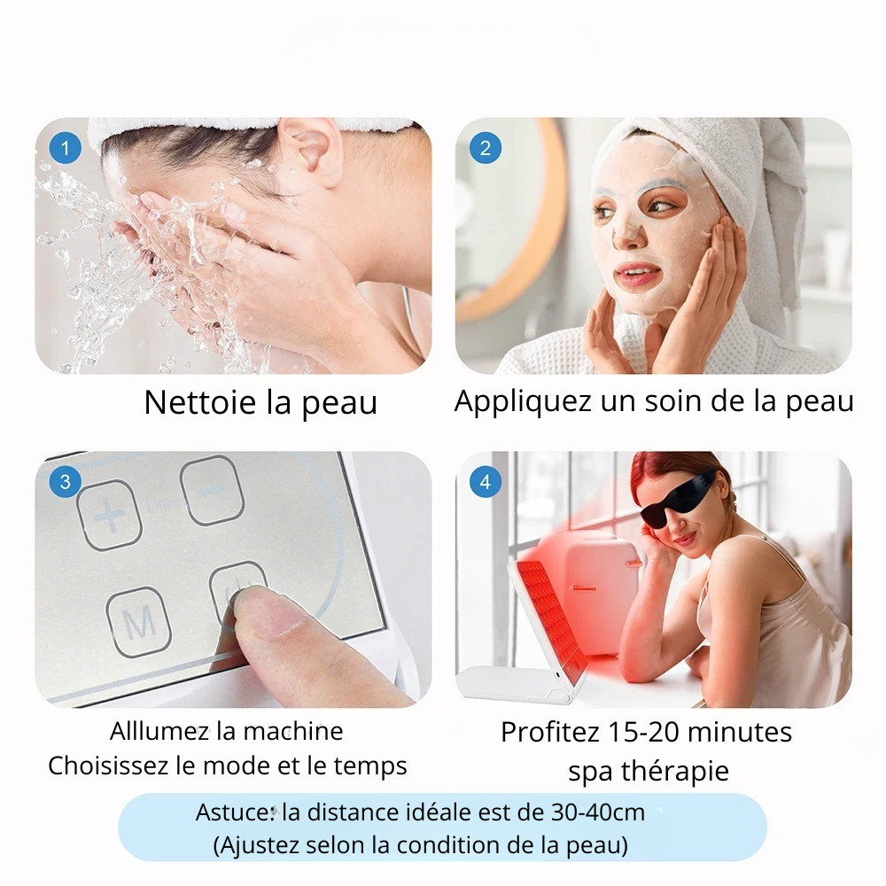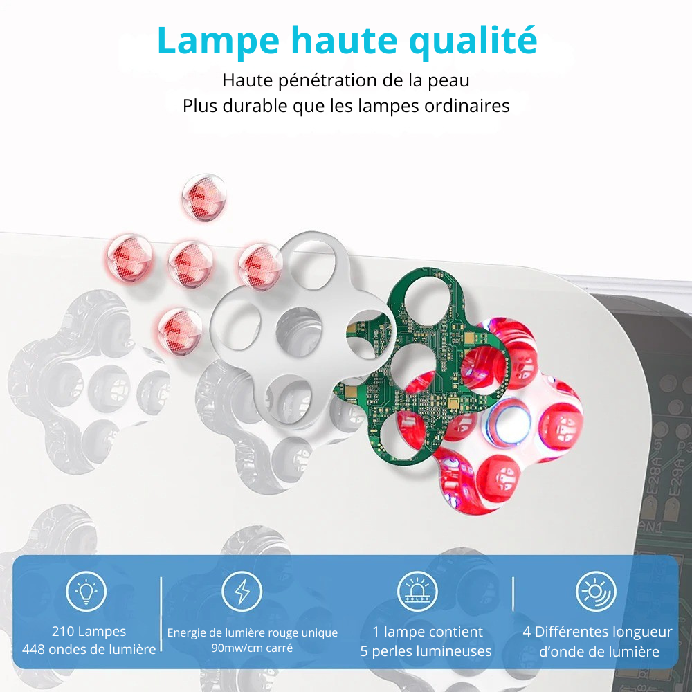 - Énergie de lumière rouge : 90 mW/cm2