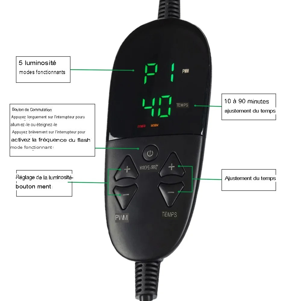 - Nombre de LED: 215 (172 rouge 660 nm, 43 infrarouge 850 nm)