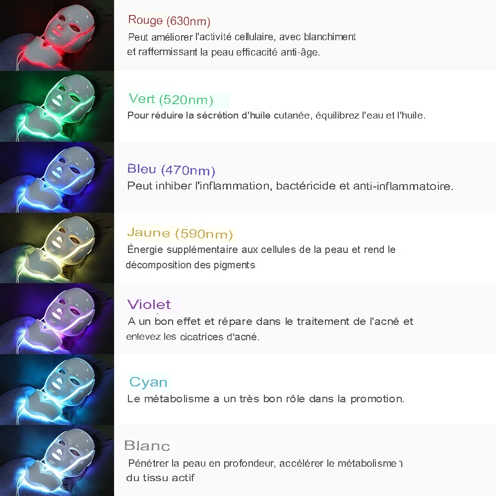 Caractéristiques techniques du masque facial LED 7 couleurs