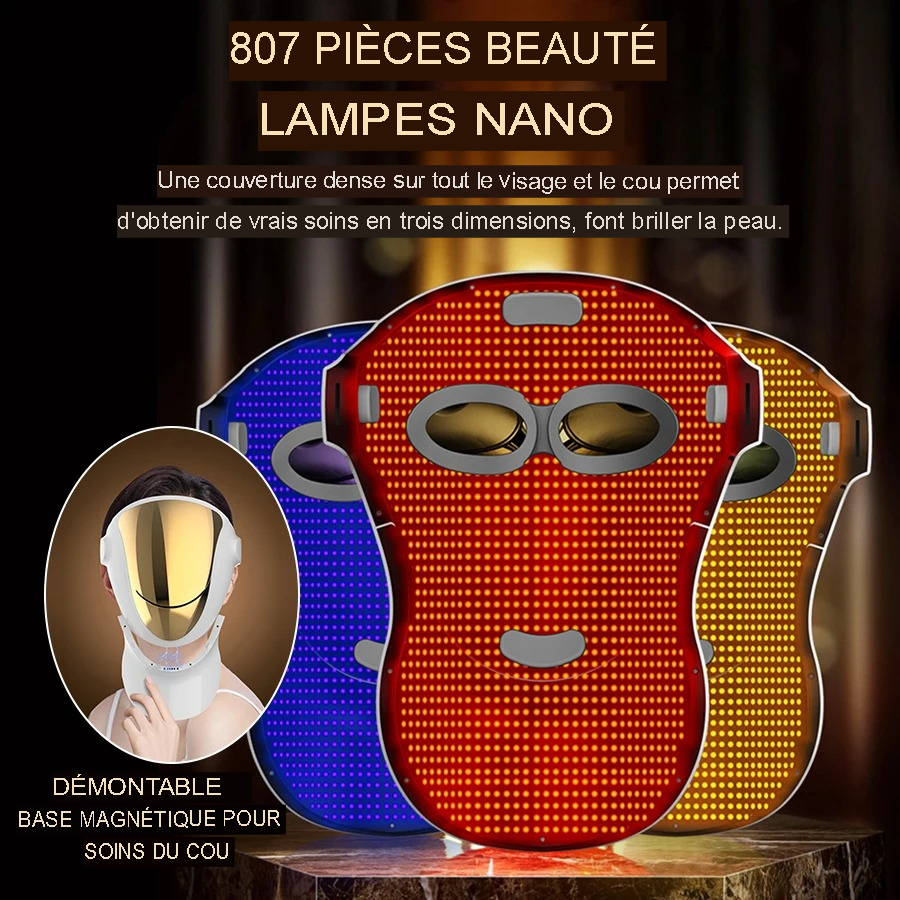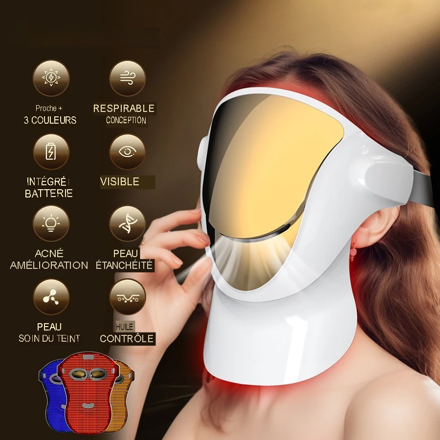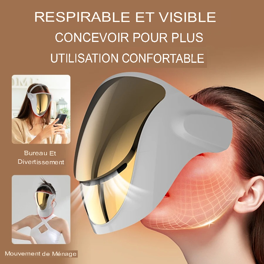 Découvrez le masque facial LED NIR, thérapie par lumière rouge, respirant, 3 couleurs pour une peau éclatante