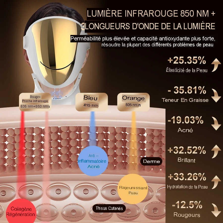 Les bienfaits révolutionnaires du masque facial LED NIR, thérapie par lumière rouge, respirant, 3 couleurs