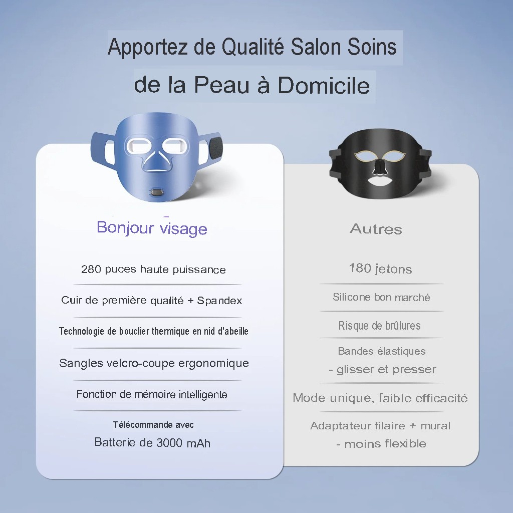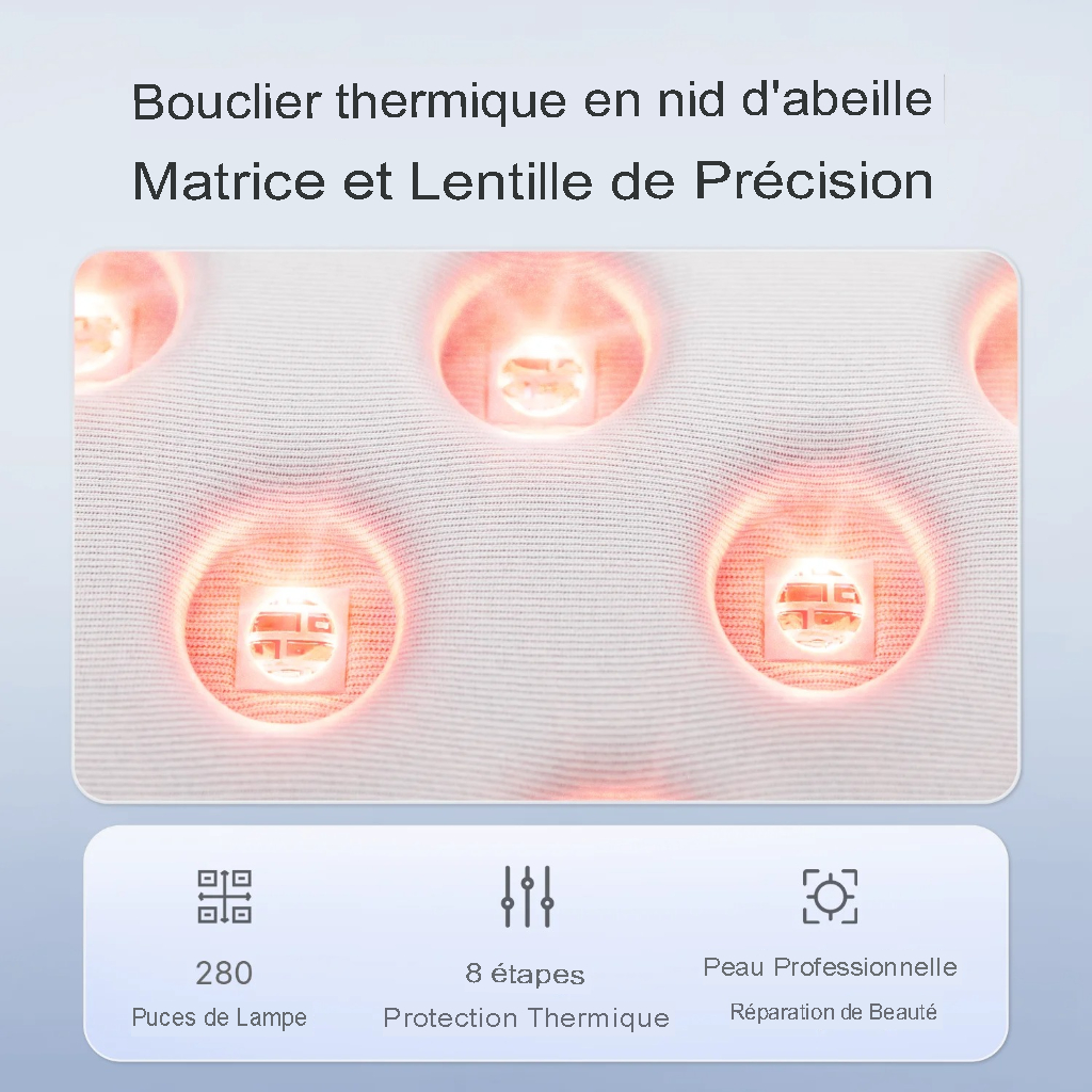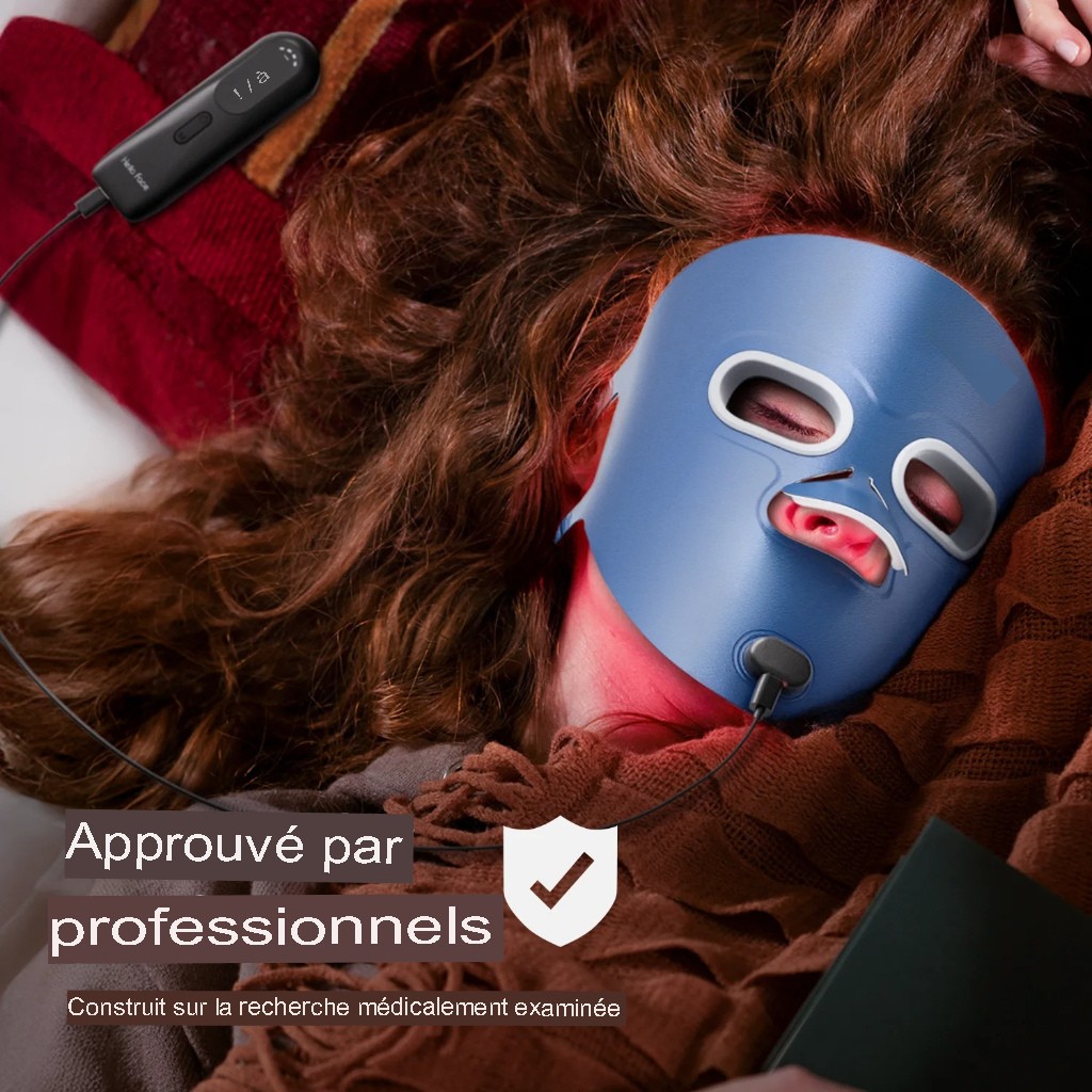 Masque de beauté LED à lumière infrarouge rouge pour la réduction des rides et lumière bleue traitement acné 3000mAh appareil soin de la peau rechargeable pour une peau éclatante