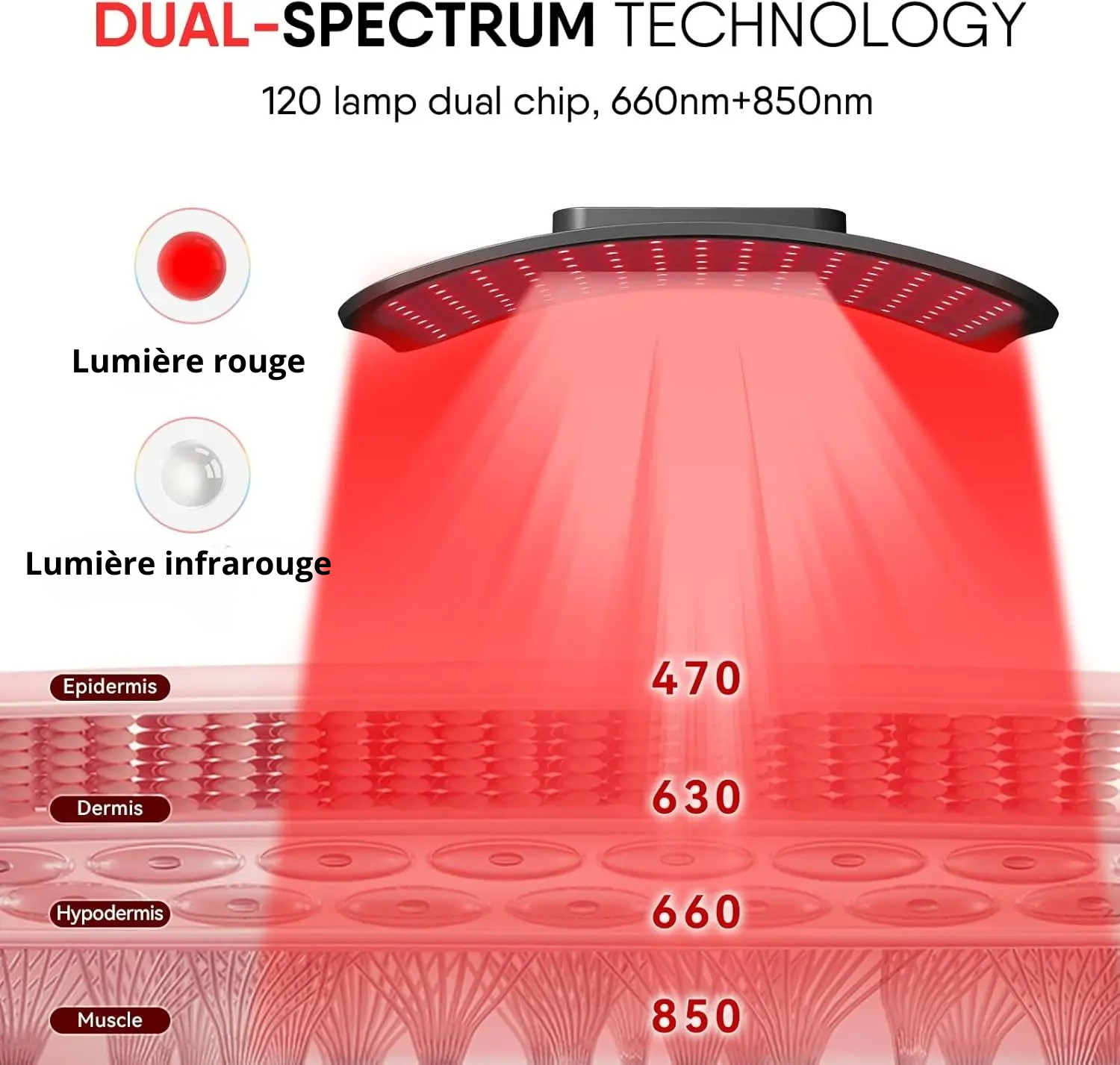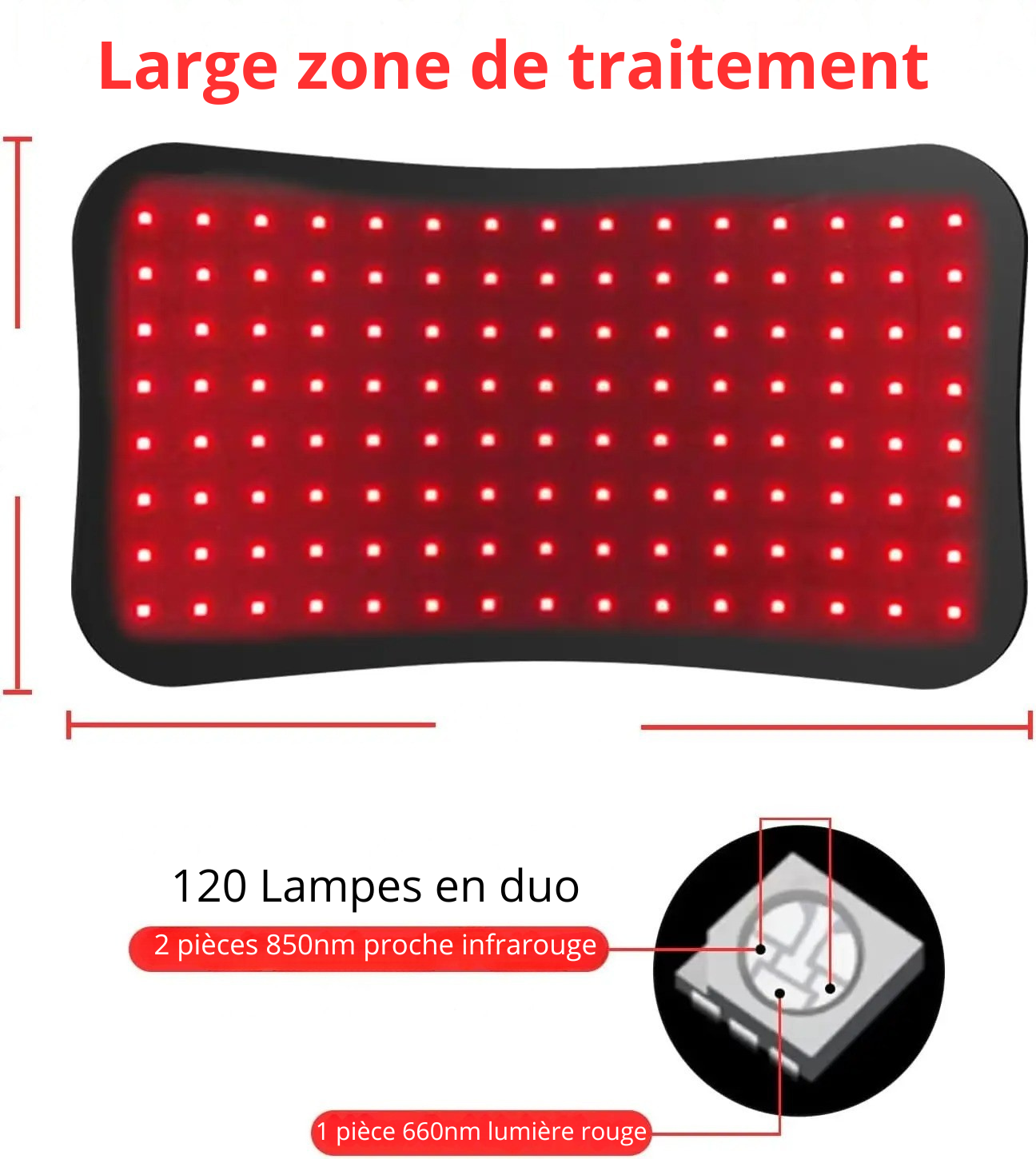 - Longueur d’onde: 660nm & 850nm
