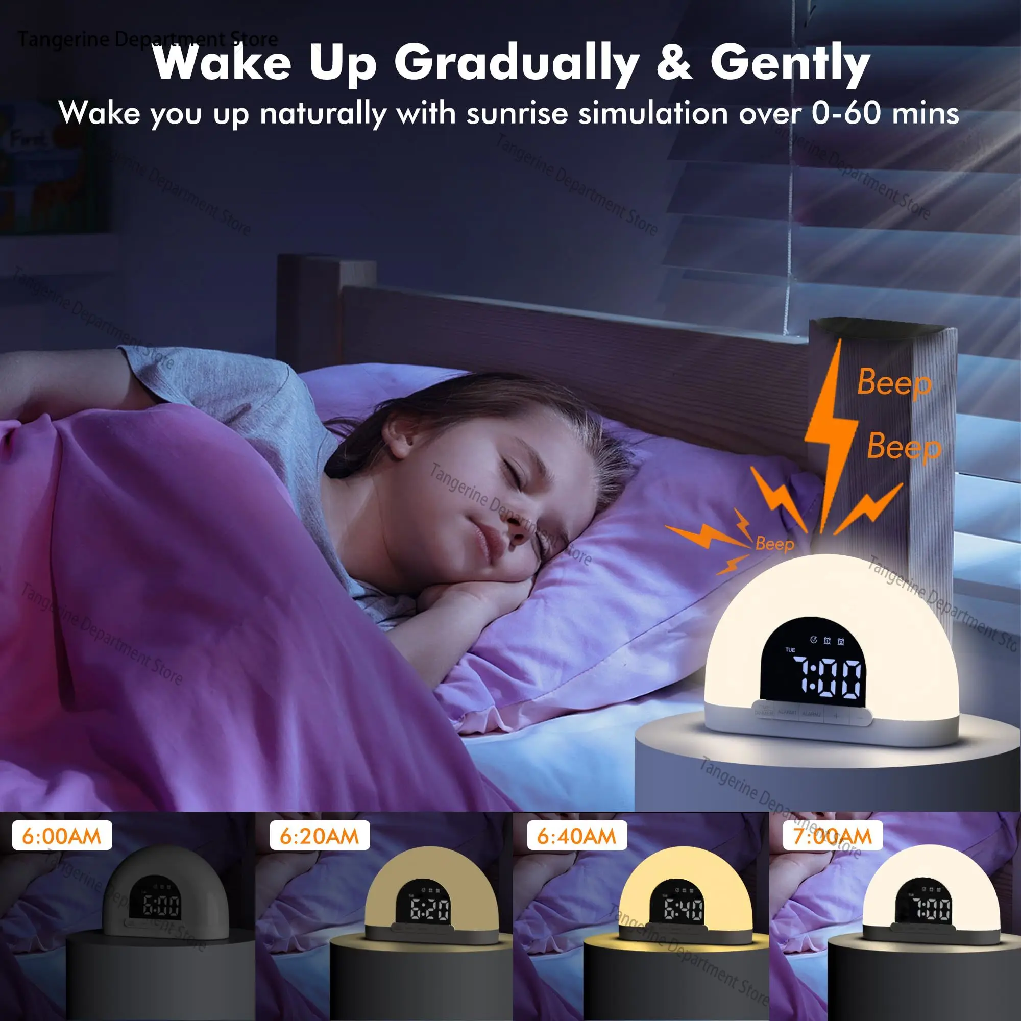 Le réveil lumineux effet lever de soleil pour chambre transforme votre expérience matinale en un éveil doux et naturel. Conçu pour simuler la lumière naturelle du soleil, cet appareil est idéal pour favoriser un réveil progressif et harmonieux, surtout pour les enfants ayant un sommeil profond.